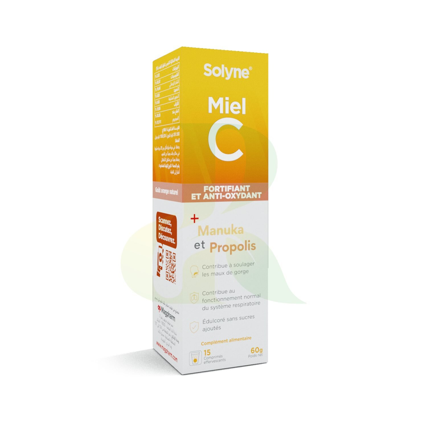 Solyne Miel C – فيتامين C بالعسل المانوكا والبروبوليس أقراص فوّارة لتقوية المناعة وتخفيف التهاب الحلق للكبار